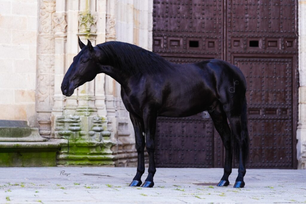 MEDIAVAL GP es un potro Pura Raza Española de capa negra uniforme, sin divisas, con un cuello bien definido y perfil subconvexo, rasgos que refuerzan su raza. Este joven semental presenta además una línea superior muy correcta y un tren posterior potente, lo que le confiere una buena funcionalidad, avalada además por sus orígenes genéticos. A pesar de su corta edad, alcanza una alzada de 1,68 m y destaca por su carácter excepcional. Tiene el hierro de Valdeoliva y es propiedad de Yeguada La Venava.